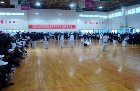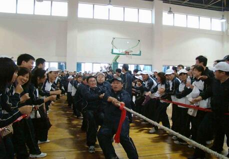 春末夏初,徐风送暖。5月16日,一个风和日丽的早晨,中金玛泰职工趣味运动会在一个连空气中都弥漫着海鲜味道的好地方---连岛阅海楼海上训练基地的体育馆内准时敲响了战鼓。一场以“我运动、我健康、我快乐”为主题的职工趣味运动会正在这里隆重上演。公司全体员工分为八个代表队共计四百余人浩浩荡荡地开进了比赛场地。顿时,人声鼎沸却秩序井然的活动现场进入了一级战斗准备阶段,下面是现场记者的报道: