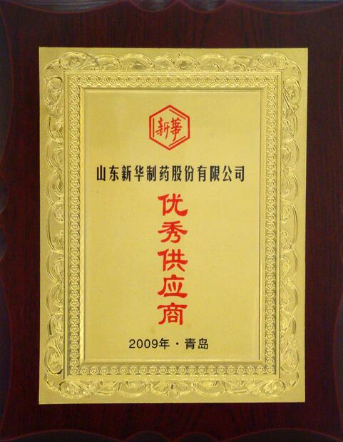 7月18日,在山东青岛召开的新华制药制剂供应商大会上,我公司被评为2009年度山东新华制药股份有限公司优秀供应商并颁发证书。