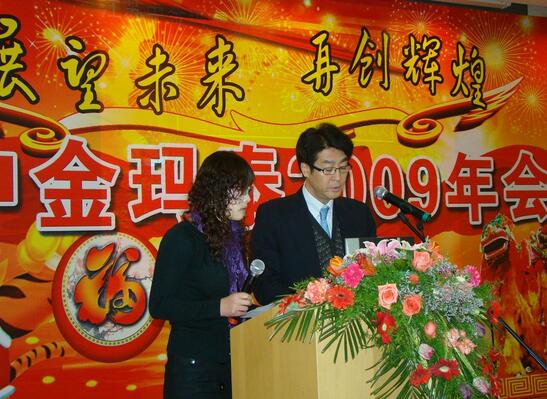 在年会进行的过程中,日本玛泰藤田社长也发来贺电,贺电中,他对中金玛泰为整个玛泰集团2009年的业绩做出的杰出贡献表示感谢!2010年面对原材料价格持续上涨的压力,藤田社长希望中金玛泰能够切实实施成本管理、生产管理,降低生产成本,强化销售、争取订单,秉承制造业之根本、踏实向前。以成为联合集团主干海外子公司为目标,与日本玛泰并肩奋斗,共创辉煌。