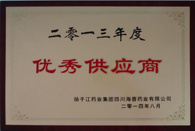 近日,在扬子江药业集团四川海蓉药业有限公司召开的供应商大会上,四川中金医药包装有限公司凭借优秀的企业品牌,过硬的产品质量、完善的售后服务体系以及与海蓉药业多年的良好合作关系,在众多的海蓉药业合作商中脱颖而出,荣获“优秀供应商”称号,在铝箔和复合膜类供应商中,获此殊荣仅我公司一家。