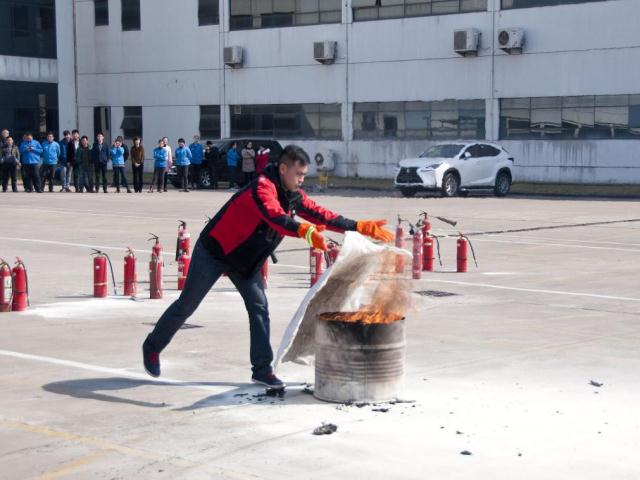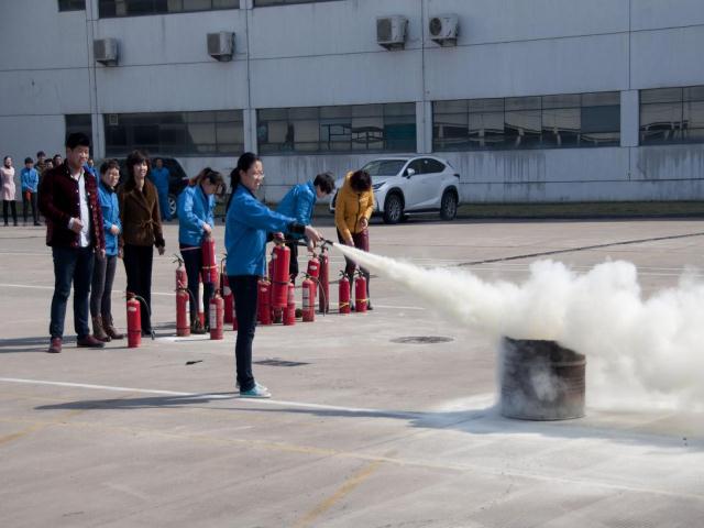 为了让消防知识深入人心,培训课程结束后,公司安全科长杨正涛在室外场地就灭火器材及防护装备的使用进行了现场的示范与演练,同时对初起火灾扑救方法以及火灾发生后如何报火警、如何安全疏散和自救逃生等安全常识进行了详细的解说,并在现场让公司员工亲身体验了一次灭火实战演练过程。在随后的各工厂应急演练疏散过程中,当消防警报突然响起,各区域安全负责人立即组织本区域人员井然有序地按照规定疏散路线,迅速撤离现场,到达指定地点,出色的完成了疏散逃生演练。