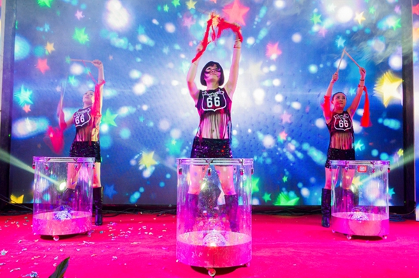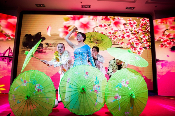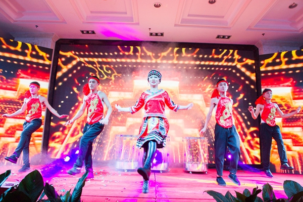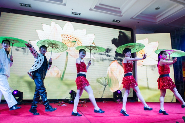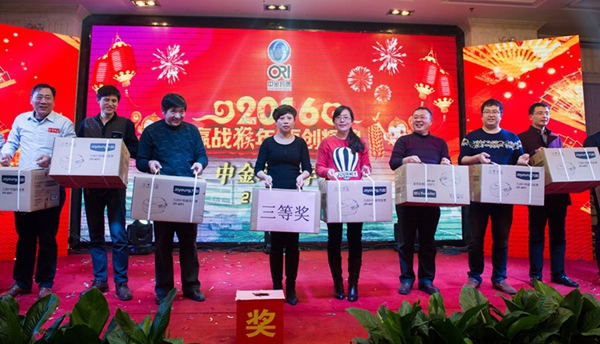 年会的文艺演出部分,在一工厂员工表演的活力四射、激情洋溢的开场舞中拉开了帷幕。专业的舞台效果和色彩绚丽的灯光让本场晚会在往年的基础上提升到一个新的高度。晚会节目更是丰富多彩,各具特色,融合了古典时尚、民族流行等元素,歌舞、小品、相声轮番上演,充分展示了中金玛泰员工优秀的人文素养和健康向上的精神风貌。 来自世纪缘大酒店的姑娘们头戴银饰,身着艳丽的服装,跳着活泼欢快的侗族舞蹈《多嘎多耶》,让观众们眼前一亮。技术质量部带来的《舞舞相约》,一个个撑着油纸伞款款走来的姑娘们,让观众仿佛置身于淡墨浅韵的江南水乡,那曼妙动人、摇曳生姿的孔雀舞更是惊艳四座。二工厂带来的《鼓舞2016》,帅哥美女们头戴五彩花环,穿着飘扬的草裙,用火辣多情的草裙舞赢得了台下观众的阵阵欢呼。最振奋人心的莫过于集声、光、水景为一体的水鼓舞, 气势恢宏,充分演绎出灿烂振奋的舞风和鼓韵。生产计划部那充满异域风情的新疆舞《掀起你的盖头来》以其艳丽的服饰、欢快的旋律、大胆的反串以及场上场下的精彩互动,更是将全场观众的热情点燃。小品《考核》、《偶像剧》以及相声《港城文化人》也是引爆全场,喜剧夸张的表演,幽默诙谐,笑料百出,引得观众掌声连连,笑声不断。 精彩的节目还在继续上演,台上台下已成为一片欢乐的海洋,抽奖环节中,银幕上滚动的新年寄语不仅是晚会的一大亮点,更是广大员工对新一年的憧憬和美好祝愿。除了精彩绝伦的文艺演出,最激动人心的莫过于年会上的抽奖和微信抢红包活动了,一轮轮抽奖及微信抢红包活动不断将年会的气氛推向高潮。 在酒会活动中,樱井董事长、徐总经理携公司高层领导向员工一一敬酒,并送上红包,感谢各位员工为公司发展所付出的努力。新年伊始,让我们带着对春的向往和对公司的祝福,凝聚力量,整装待发,共同携手迈入2016年的全新里程!