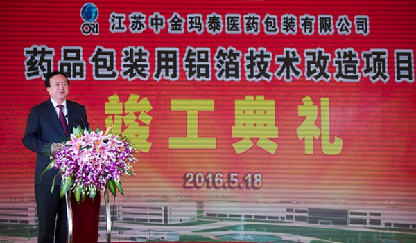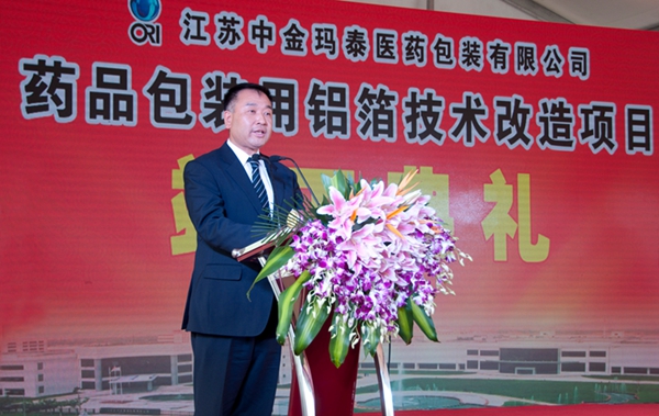 连云港市副市长徐家保作了讲话,他代表连云港市政府对中金玛泰药用包装铝箔技改项目竣工庆典表示热烈的祝贺。他说,新医药产业是我市支柱产业之一,医药包装是新医药产业链上的重要环节之一,作为我市医药包装领域的代表,中金玛泰经过多年的发展,已成为国内药包材行业的龙头企业。希望中金玛泰在技术水平达到国际先进标准的基础上,能够进一步提高产品的市场竞争力。同时他也指出,中金玛泰新工厂的正式启用,体现了我市企业发展理念从做大做全的传统经营思路,向“做强主业、做精专业”的战略性转变。连云港市政府、市开发区及各有关部门将以“深化企业服务年”活动为契机,进一步做好企业服务工作,为企业打造良好的发展环境。