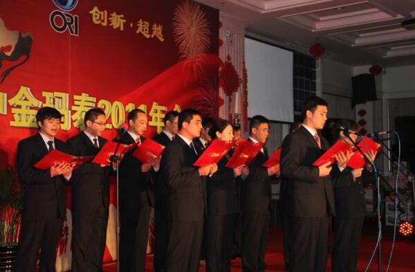 年会伊始,公司总经理徐根华代表公司董事会、经营层向一年来,为公司的发展而辛勤工作、努力奋斗的全体员工,致以新春的祝福。随后徐总做《2011年工作总结及2012年工作计划》的报告。他从六个方面回顾了2011年的各项工作,徐总指出,2011年是中金玛泰发展进程中极不平凡的一年,是中金人迎接挑战、各项事业不断取得新业绩的一年。一年来,在面对复杂多变的国内外经济形势,公司上下齐心协力,克服了生产成本持续上涨、人民币升值加速、市场竞争形势恶化以及塑化剂事件等诸多不利因素的影响,较好地完成年初下达的各项经营预算指标,企业各项工作也取得了可喜的经营成绩,企业实现了持续、稳步发展的目标。