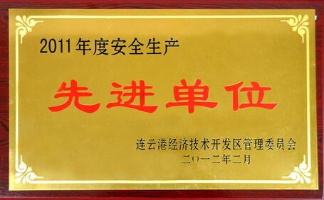 近日,在连云港经济技术开发区管委会召开的2012年全区安全生产工作会议上,中金玛泰被开发区管委会授予2011年度安全生产先进单位称号。