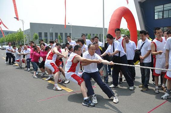下午在室外举行的拔河比赛将本次趣味运动会的气氛推向了高潮,虽然艳阳高照,天气炎热,但丝毫没有影响员工们对这次活动的热情。只见赛场上人头攒动,气氛异常热烈,伴随着拉拉队员震耳欲聋的加油声,选手们使出浑身力气,奉献了一场场精彩的比赛。许多比赛队伍实力相当,每次两队都要经过一段时间的僵持才会分出胜负。最终,由化工工厂、总务部、研究开发部组成的第四代表队的大力士击败各路好手夺得拔河比赛的冠军。