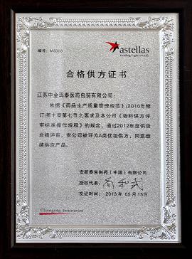7月,安斯泰来制药(中国)有限公司供应商大会在沈阳召开,会上,中金玛泰被安斯泰来制药评为2012年度A类优级供方。这一奖项的获得也代表了用户对中金玛泰产品及服务的高度认可。作为医药包装行业的领军企业,中金玛泰始终视产品质量为企业的生命线,在立足于高品质,高起点的基础上,凭借具有国际先进水平的生产设备及工艺,通过建立完善有效的质量管理体系,以及配备先进、精密的检验、检测设备,以科学的生产管理高标准、严要求对产品生产的各个环节进行全过程的质量控制及检验,确保为客户提供安全、安心的医药包装产品。